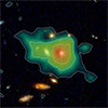 The newly revealed halos measure from tens of thousands to hundreds of thousands of light years across. Some are as simple as a football-shaped cloud surrounding a single galaxy. Others are sprawling, irregular blobs containing multiple galaxies. “Those are the fun ones,” said Mentuch Cooper. “They look like giant amoebas with tendrils extending into space.”
