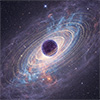 | Artistic representation of the Milky Way, where the innermost stars move at near relativistic speeds (defined as velocities that constitute a significant fraction of the speed of light, typically considered to be 10% or more) around a dense core of dark matter, with no black hole at the centre. At greater distances, the halo part of the same invisible dark matter distribution continues to shape the motions of stars in the outskirts of our galaxy, tracing the characteristic rotation curve. (Image: Valentina Crespi et al.)