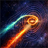 (Nanowerk News) Supermassive black holes at the centres of galaxies are one of the most active fields of research in astronomy. In order to accumulate their enormous masses, they must merge with each other. A research team led by Silke Britzen from the Max Planck Institute for Radio Astronomy (MPIfR) in Bonn has found direct evidence of two supermassive black holes in the galaxy Markarian 501, which orbit each other very closely. This could be the first time that a pair has been detected that is about to merge. This provides a unique opportunity to better understand a central process in galaxy evolution. Current findings suggest that there is a supermassive black hole at the centre of almost every large galaxy, with a mass millions or even billions of times greater than that of our Sun. It is still unclear exactly how they can reach such enormous masses. Collecting (accreting) gas from the surrounding area alone would take too long, so it is likely that they have to merge with other massive black holes. Galaxy collisions have been observed throughout our Universe. It is thus very likely that the supermassive black holes at the centres of these colliding galaxies also merge, first orbiting each other ever closer and ultimately coalescing into one. The artistic rendering shows the center of the galaxy Markarian 501, from which two powerful jets emanate. The radio observations are visible as contours in the background. The artistic rendering shows the center of the galaxy Markarian 501, from which two powerful jets emanate. The radio observations are visible as contours in the background. (Image: Emma Kun / HUN-REN Konkoly Observatory)