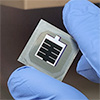 | Perovskite-silicon tandem solar cells fabricated at LMU. (Image: Aydin Group)