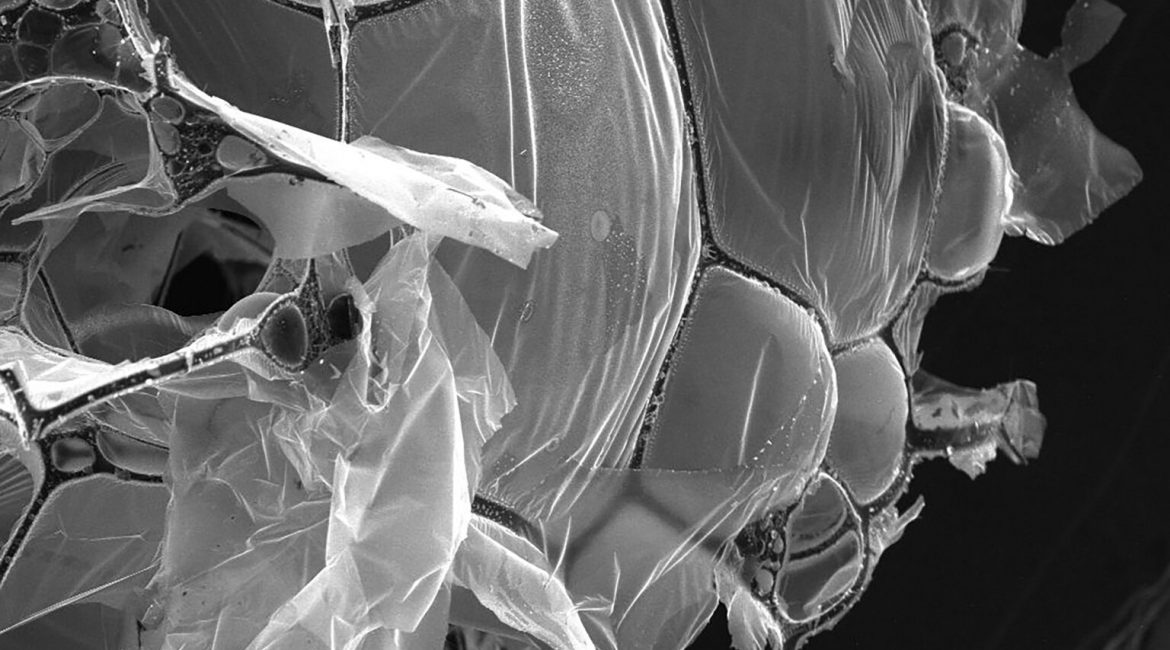 Egg whites are a complex system of almost pure protein that — when freeze-dried and heated to 900 degrees Celsius in an environment without oxygen — create a structure of interconnected strands of carbon fibers and sheets of graphene.