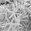 | A scanning electron microscope image reveals particles of vanadyl hydroxide (VOOH) shaped like stars. The team of Luis De Jesús Báez found that these particles behaved more like a pseudocapacitor than a battery. (Image: Luis De Jesús Báez, University at Buffalo)